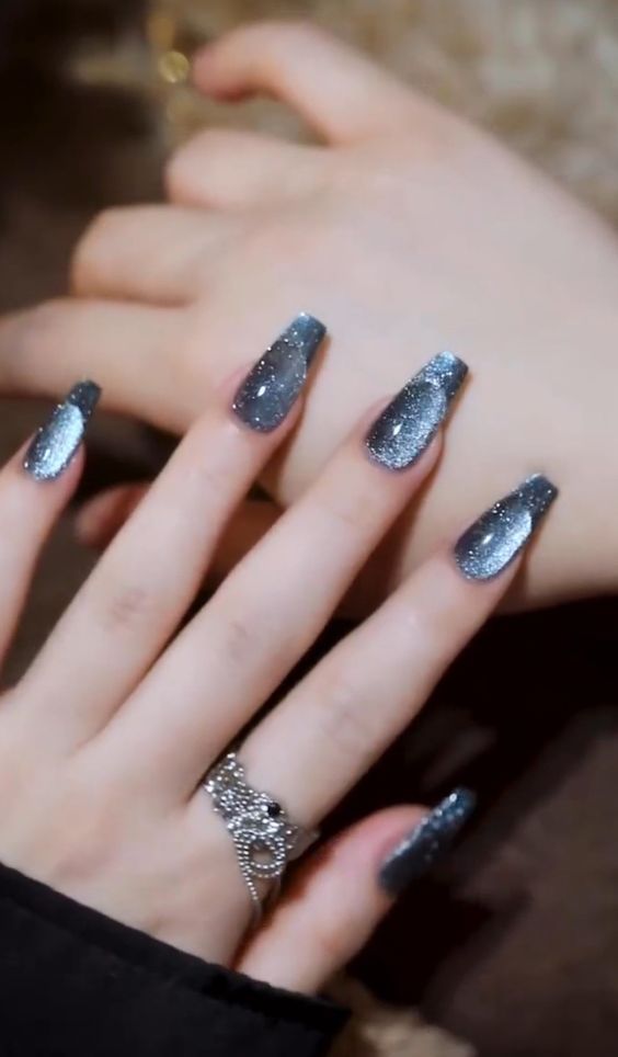 Cat eye nails are achieved using special magnetic nail polishes that contain tiny metallic particles.  This technique results in nails that shift and shimmer with light, creating depth and dimension that static colors simply cannot match.