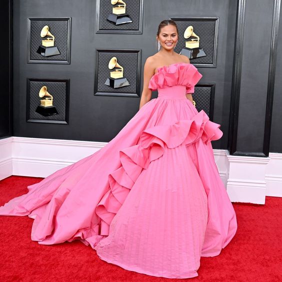 Chrissy Teigen has long been celebrated for her bold style, effortless glamour, and fearless approach to fashion. At the Grammys, she never fails to turn heads, whether she’s dazzling on the red carpet, making a statement with a unique gown, or proving that confidence is the ultimate accessory. Let’s dive into some of Chrissy Teigen’s most unforgettable Grammys fashion moments.